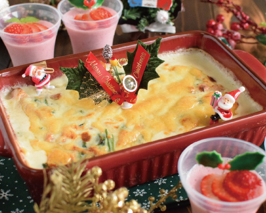 テーマ食材美濃せいきょう牛乳三河せいきょう牛乳1L(超高温殺菌) チキンとほうれん草のクリーミーグラタン 牛乳はお料理やデザートにも使える万能食材です。みんなが集まるクリスマスパーティーにも牛乳を使ったお料理をしてみませ…