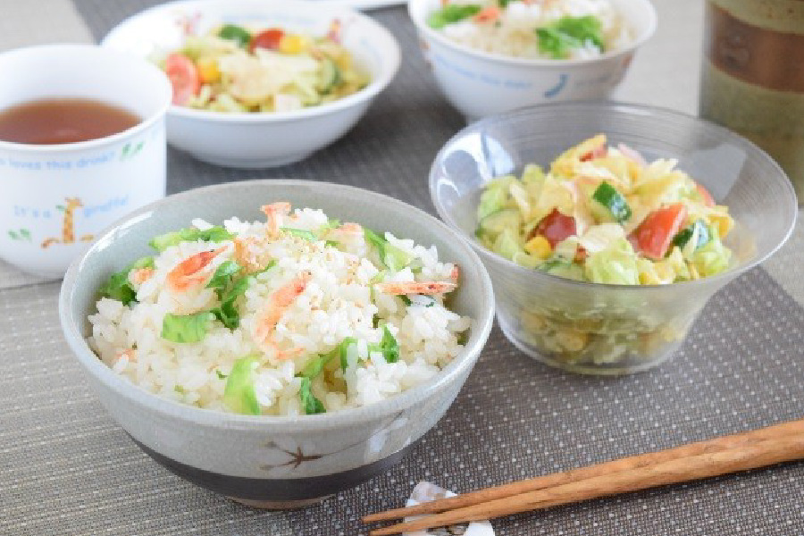 桜えびとレタスの炊き込みごはん