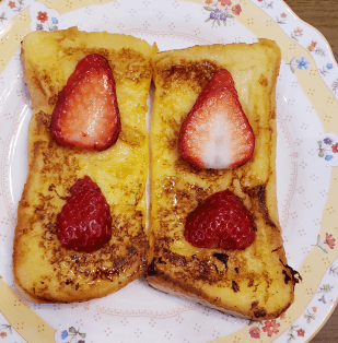 休日の朝食はフレンチトースト!わが家のとっておきの朝食は、パパが作るフレンチトースト。できるだけ手間を省きたいママに言ってもムダだと悟った娘が、寝ているパパを起こしてリクエストしたのが始まり(笑)