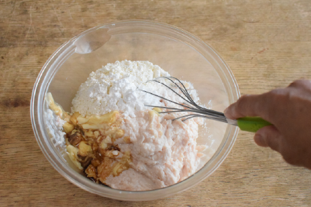 - ❷ボウルに❶・(A)を入れ、よく混ぜ合わせる。